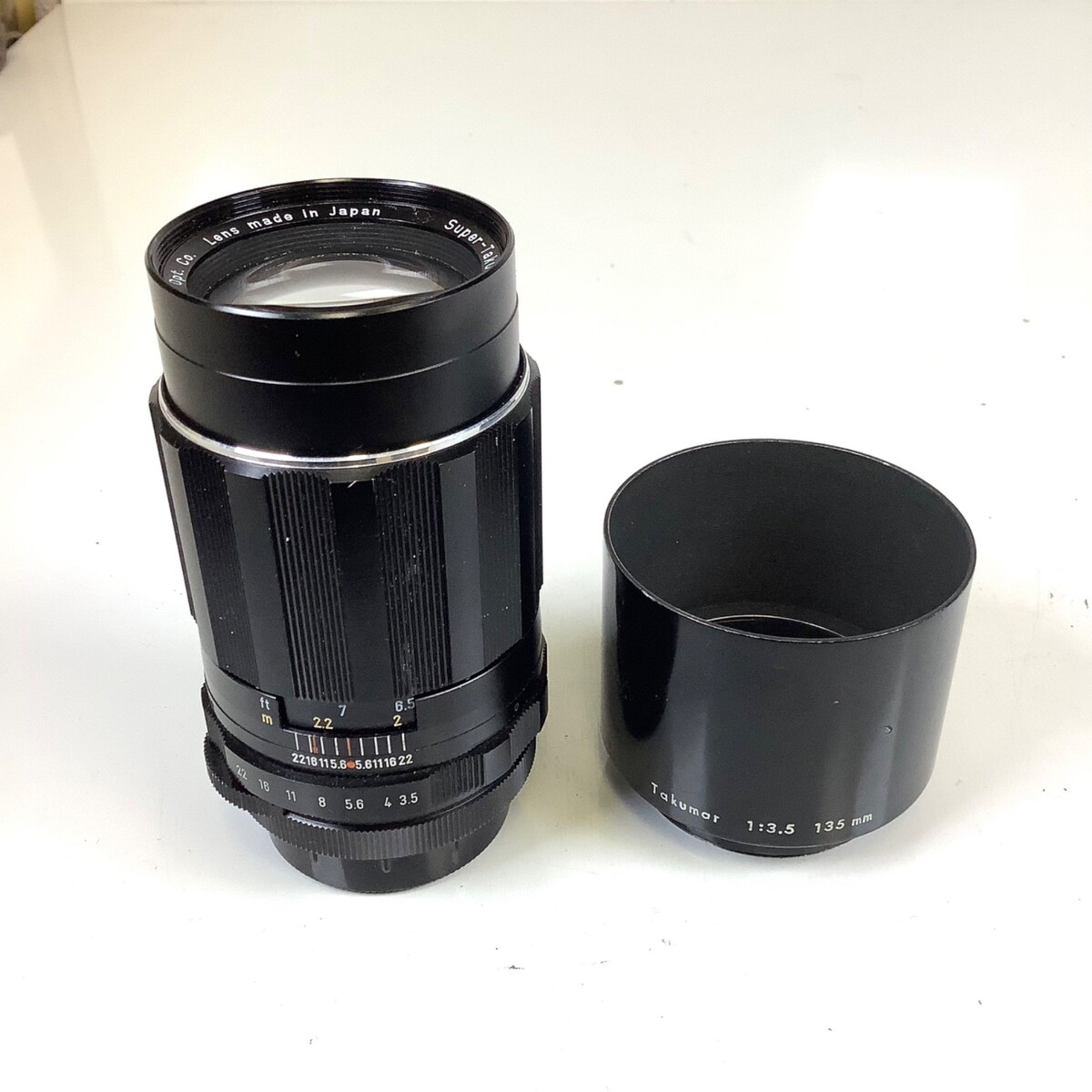 Pentax Super Takumar 135mm f/3.5 Teleplus Lens M42 Japan Asahi Opt w/Hood. Shows some minor cosmetic wear but overall good cosmetic condition. Glass is clear and free of haze, fungus or scratches. Please see all photos.