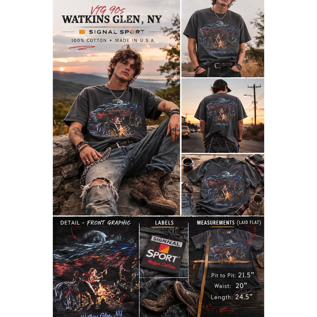 VTG 90s Watkins Glen NY Signal Sport Tee Grunge Americana Campfire M