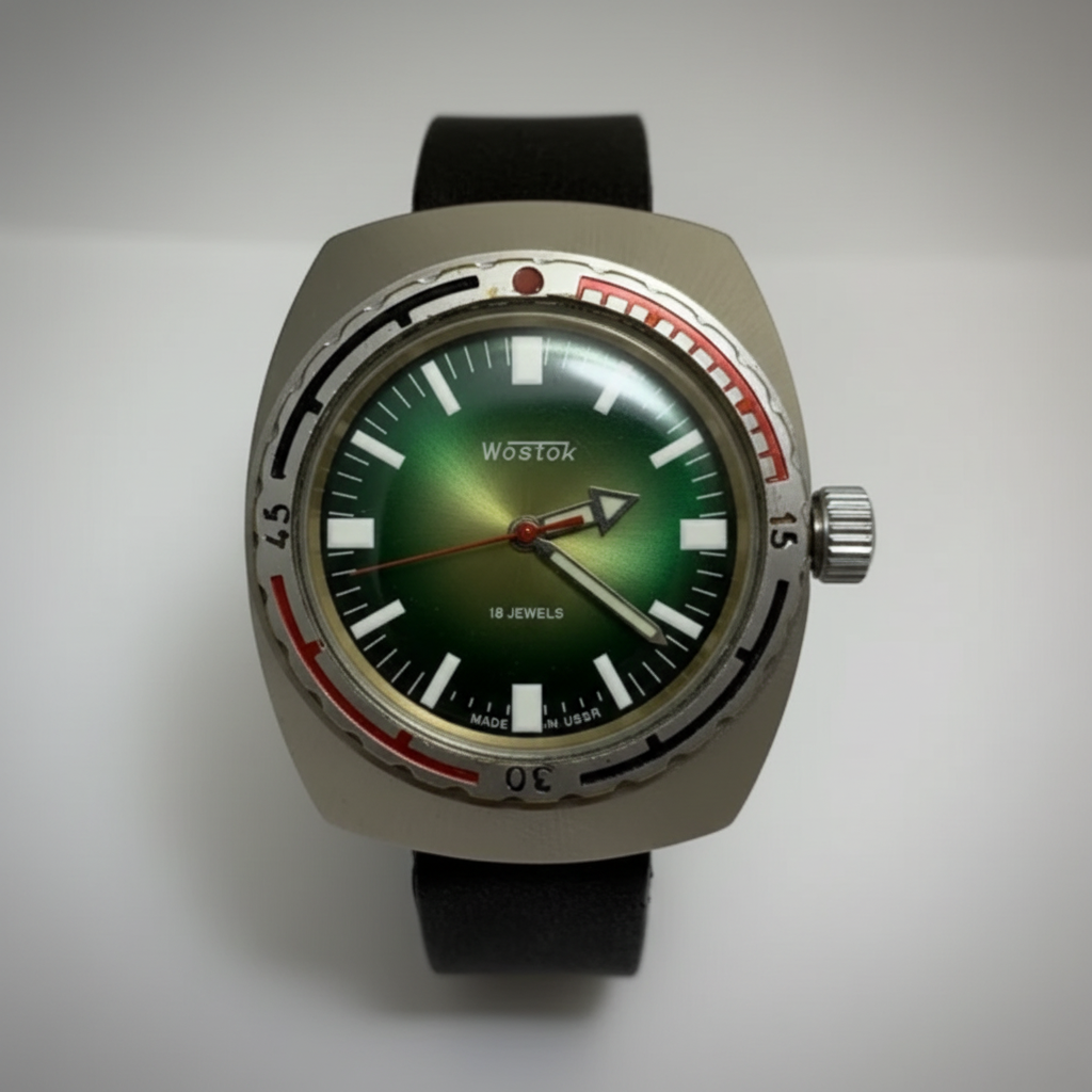 Vintage Vostok Komandirskie Diver Watch in Stainless Steel ? Barrel Case Green Dial | Excellent Condition