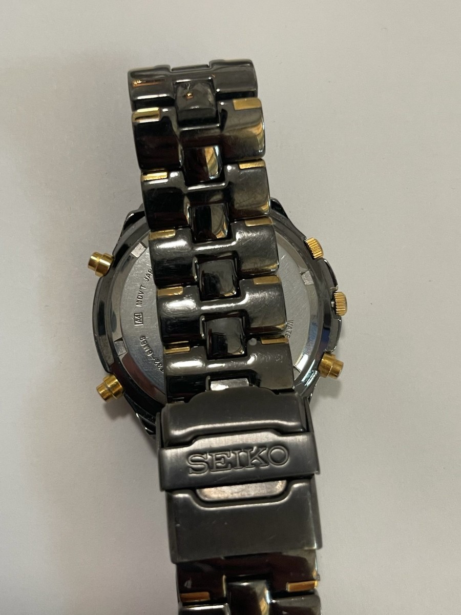 Seiko Men's Quartz SNA283 Chronograph Black Titanium + Gold Accent Watch