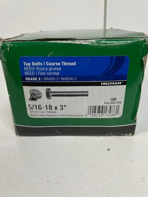 2 Pack of Hillman Grade 2 Tap Bolts 5/16 - 18 x 3 | 221017 (200 Pcs in Total)