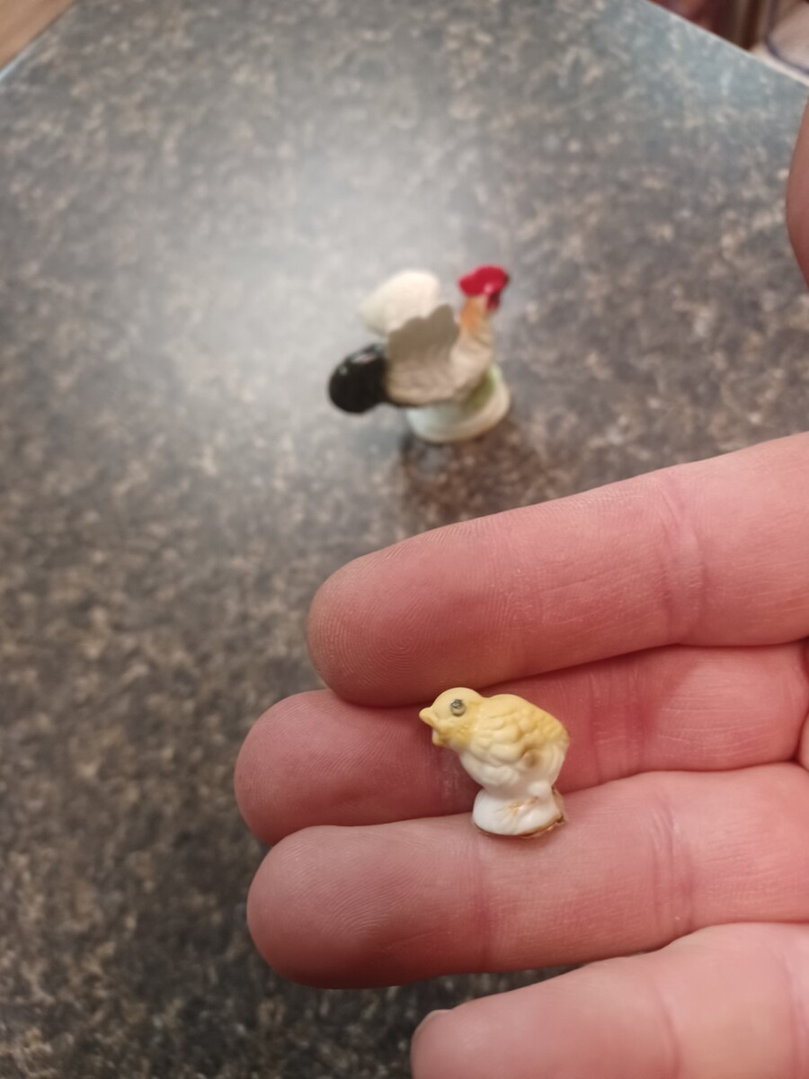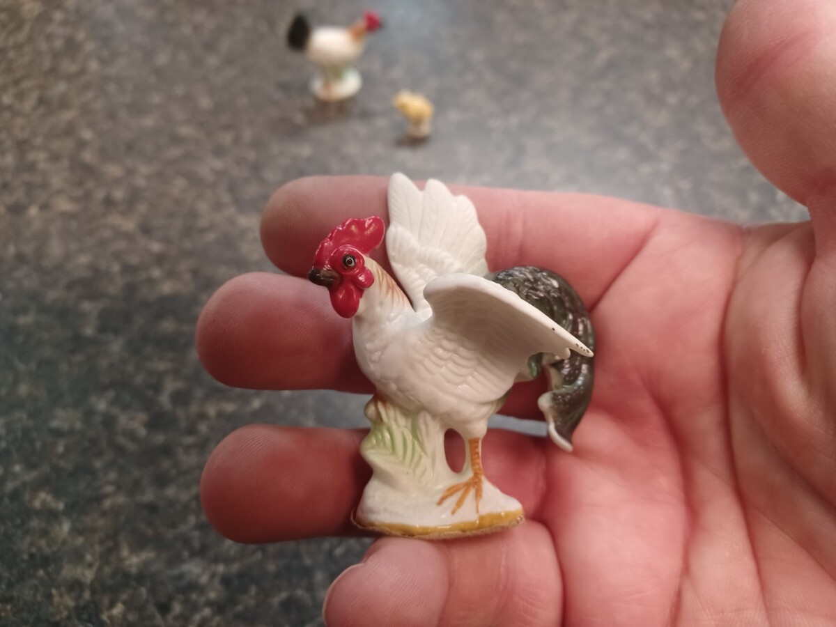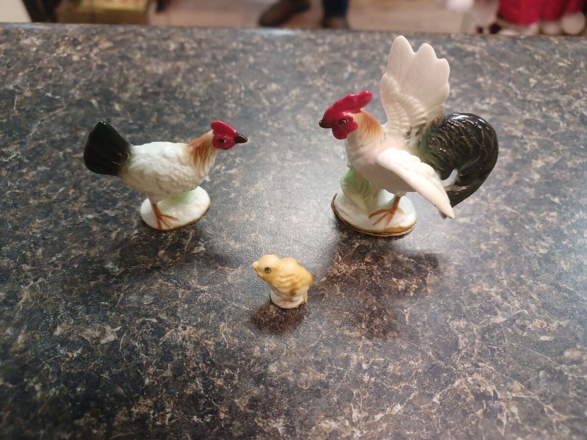 Vintage Set Of 3 Bone China Miniature Chickens Hen Rooster Chick Figurines Japan