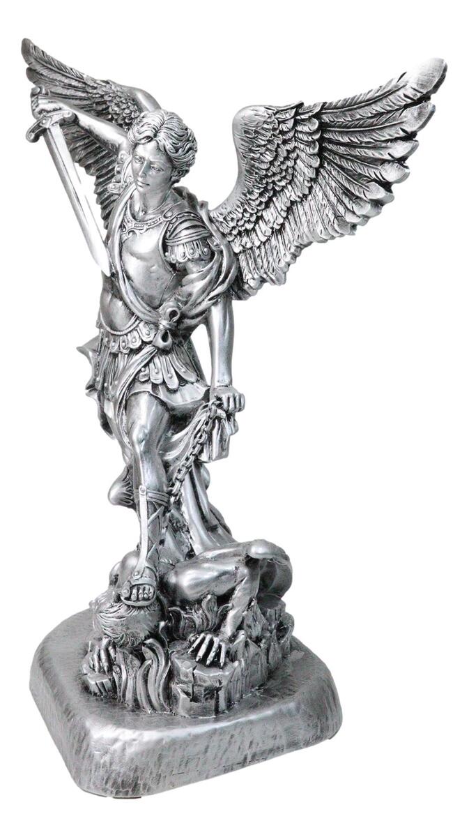 ? This Saint Michael The Archangel Statue is made of high quality designer resin, individually handpainted and polished in silver finish. Because each piece is partially hand crafted, color tone may vary from pictures.