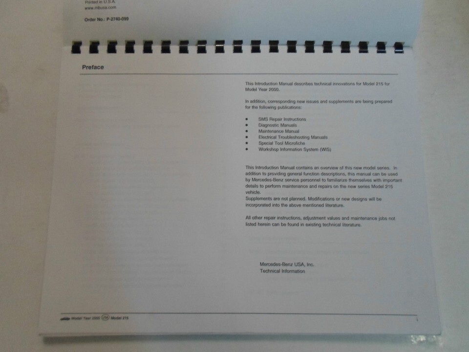 2000 Mercedes Model 215 Manuel du service d'introduction preliminaire