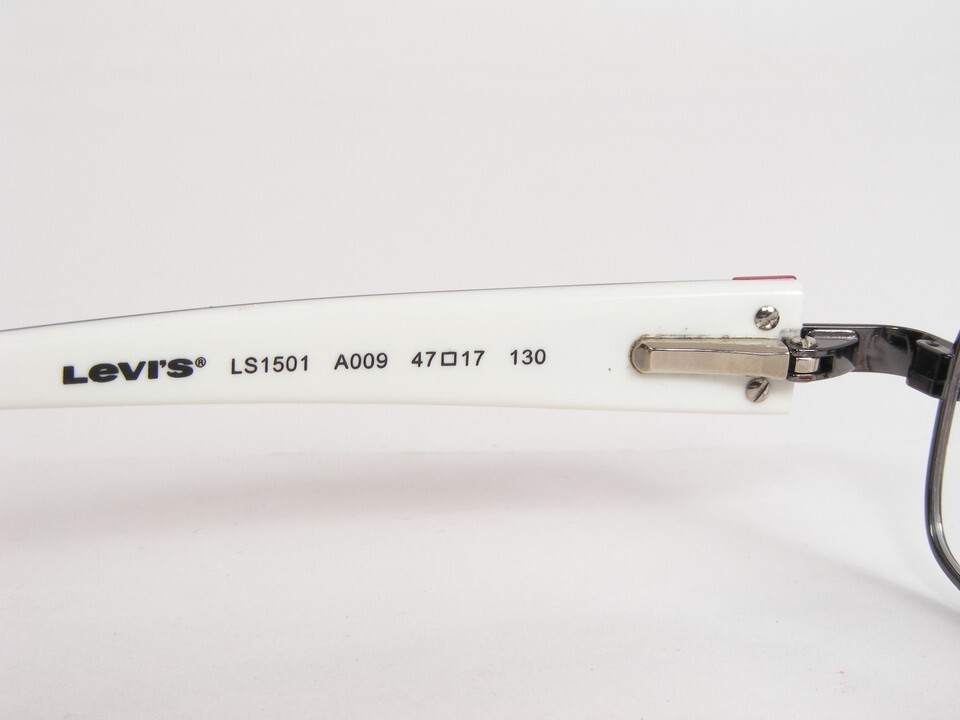 LEVI'S LS1501 A009 Gunmetal /Black White UNIQUE EYEGLASSES 47-17-130mm. (C1037) Actual photos of these glasses. This is exactly what you will receive. NOTES: NEW eyeglasses but have a few small scratches and therefore the cost is reduced. Please look the photos. Style and comfort in everyday use. A pair of glasses is not just an accessory; it provides the first hint of an individual?s personality. The wearer must enjoy a frame and feel that it is completely consistent with his or her look and mindset. A great pair of glasses, with all its detail and complexity must above all be an extension of the individual. Returns are always FREE for any reason. If you don't like it, simply click "Item no longer needed". Item should be returned within 60 days as UNUSED in original packaging. If you h