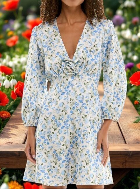 B Darlin Juniors' Floral-Print Rosette Dress Size: 1/2 - White RETAIL: $65