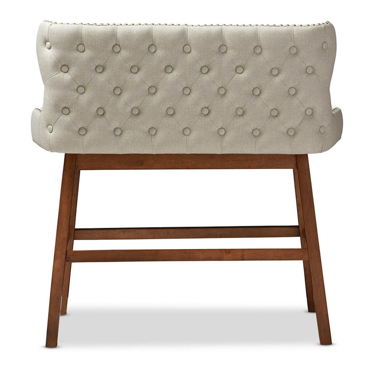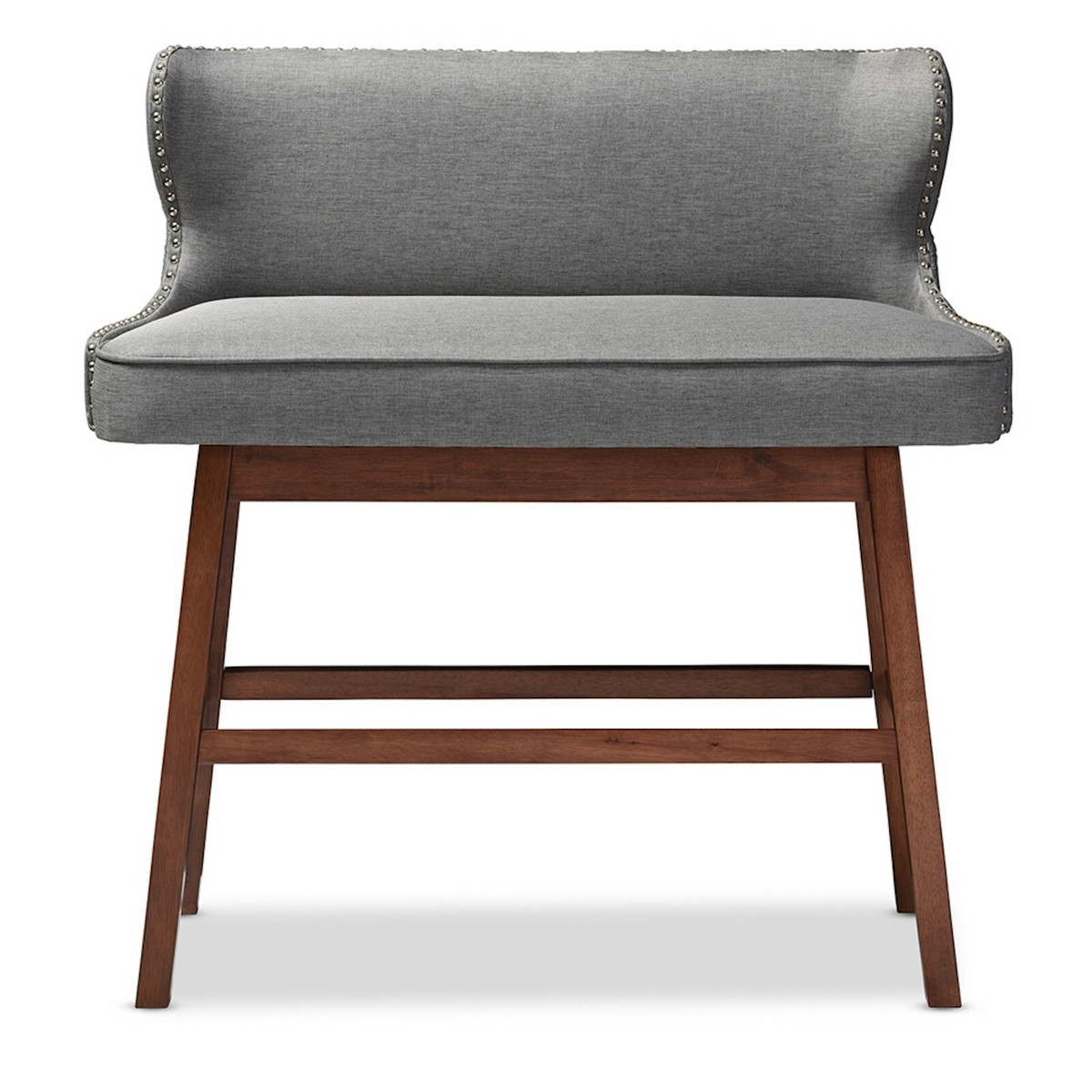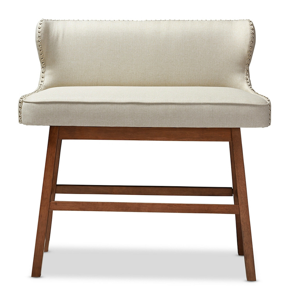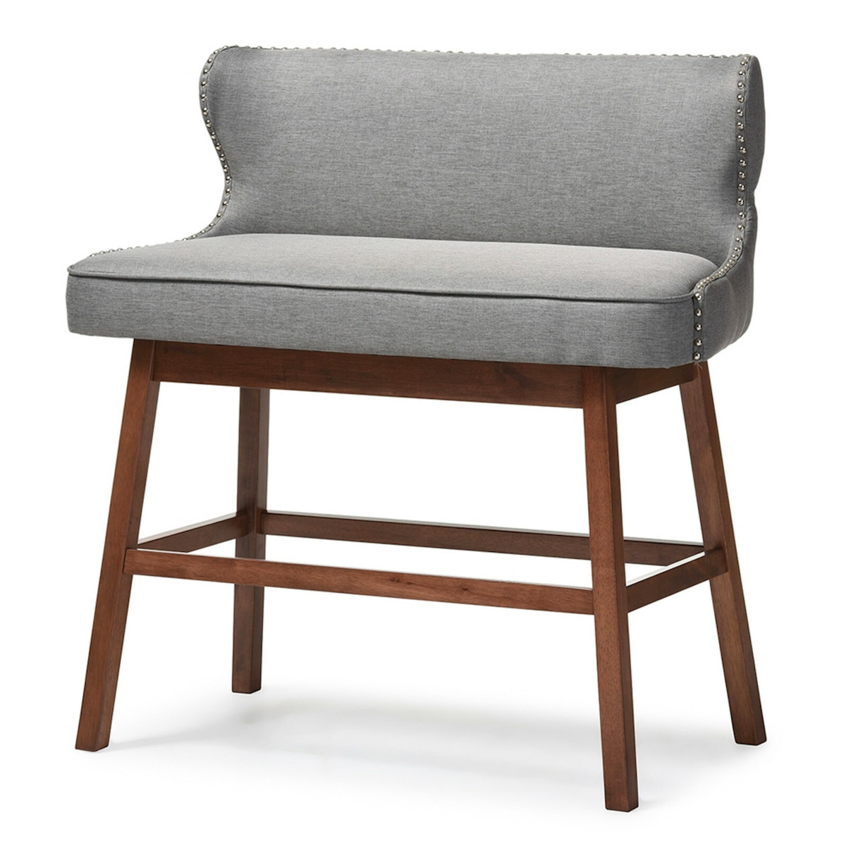 Modern Bar Bench Banquette Beige Or Gray Fabric Nail Head Trim