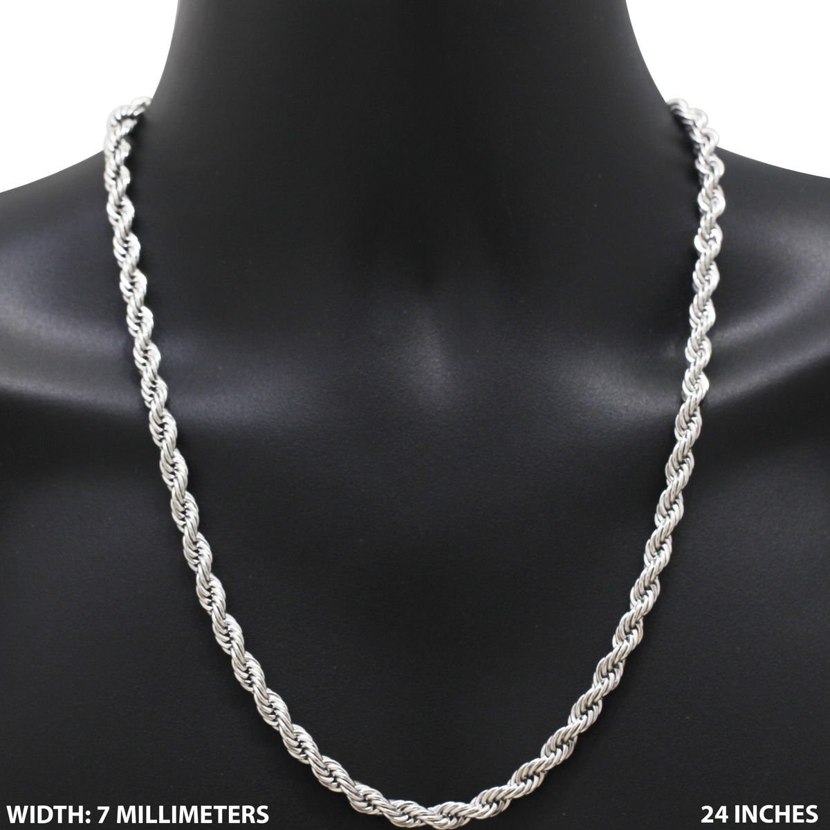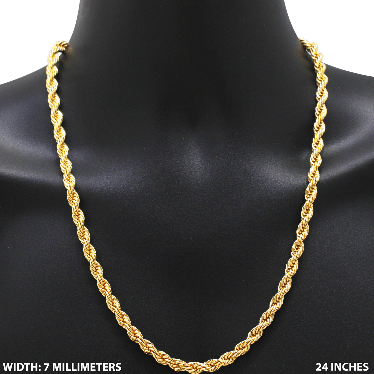 316L Stainless Steel 18k Gold Plated 7mm Rope Chain Necklace Bracelet 8”-24”