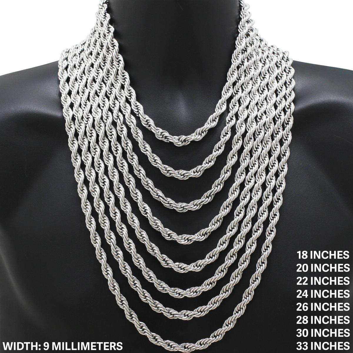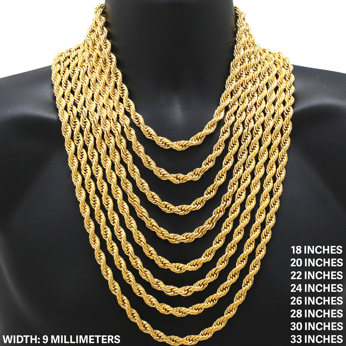 316L Stainless Steel 18k Gold Plated 9mm Rope Chain Necklace Bracelet 8.5”-33”