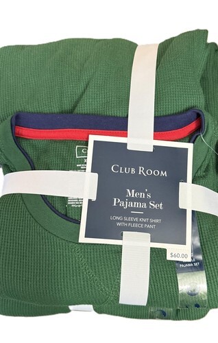 Club Room Men's Waffle Long-Sleeve T-Shirt Pajama Pant Set Evergreen-Small