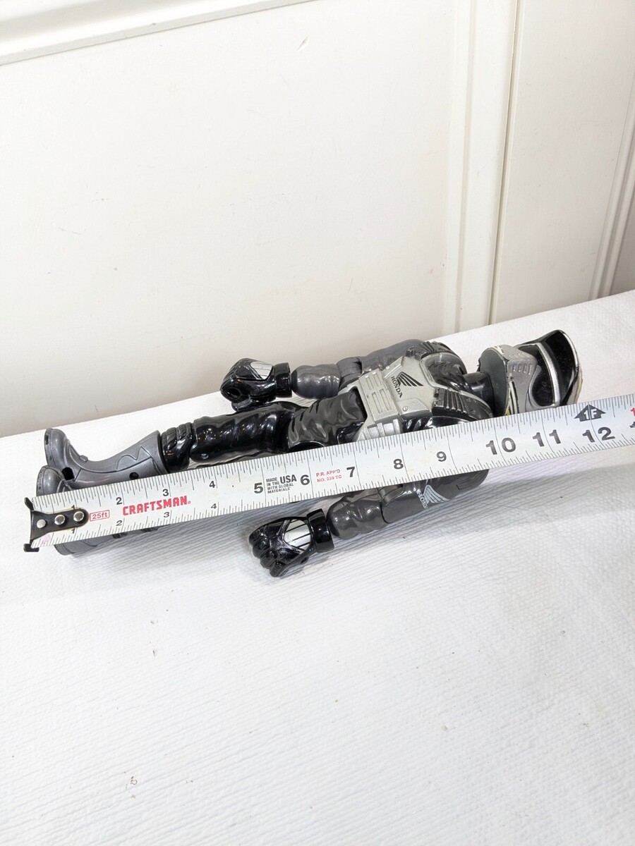 Paint wear/sticker wear/scuffs/scratches from use. See pics for details measurements. Fair to good condition. Gray color with poseable joints.