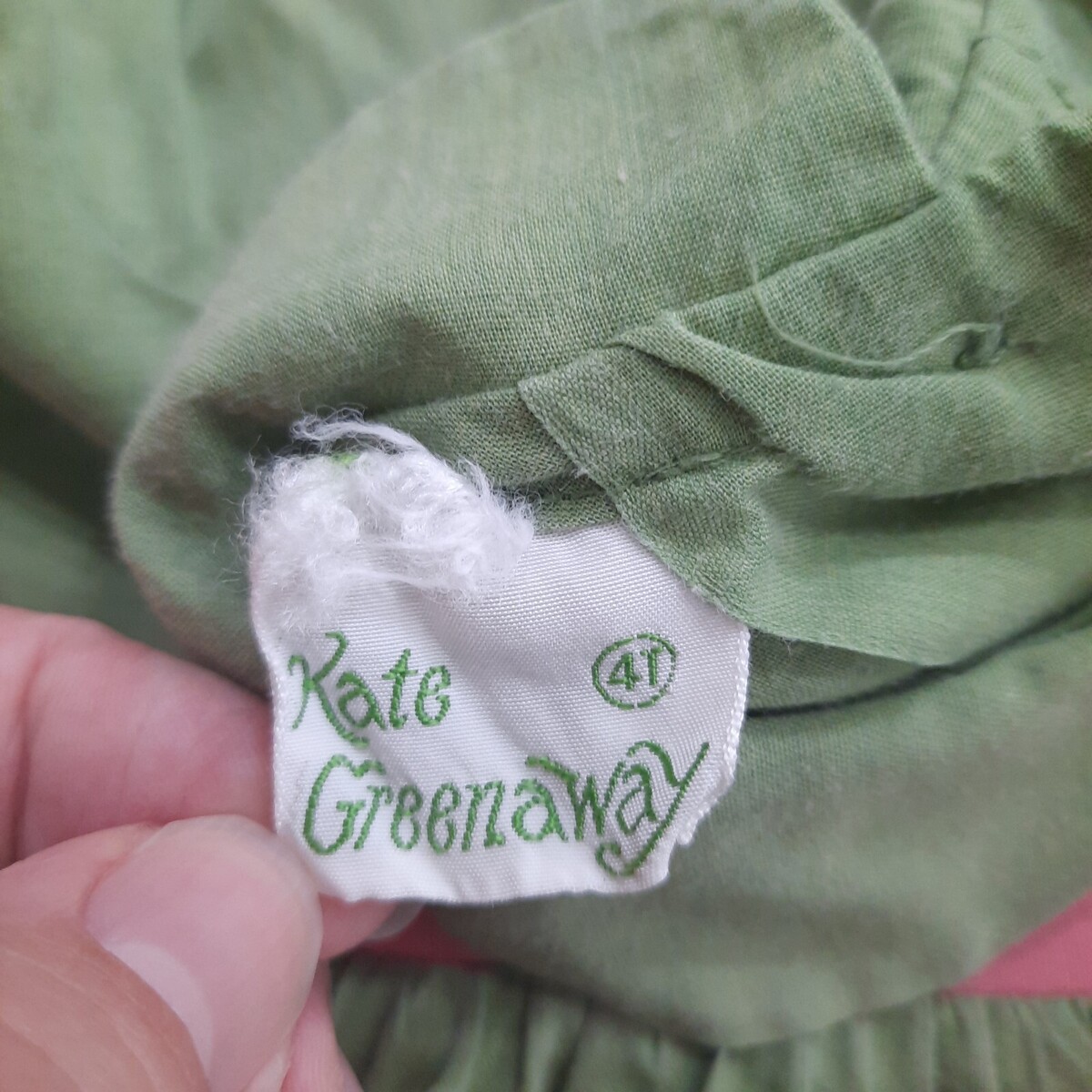 Vintage Kate Greenaway girls dress green 4 toddler pink lace peter pan collar