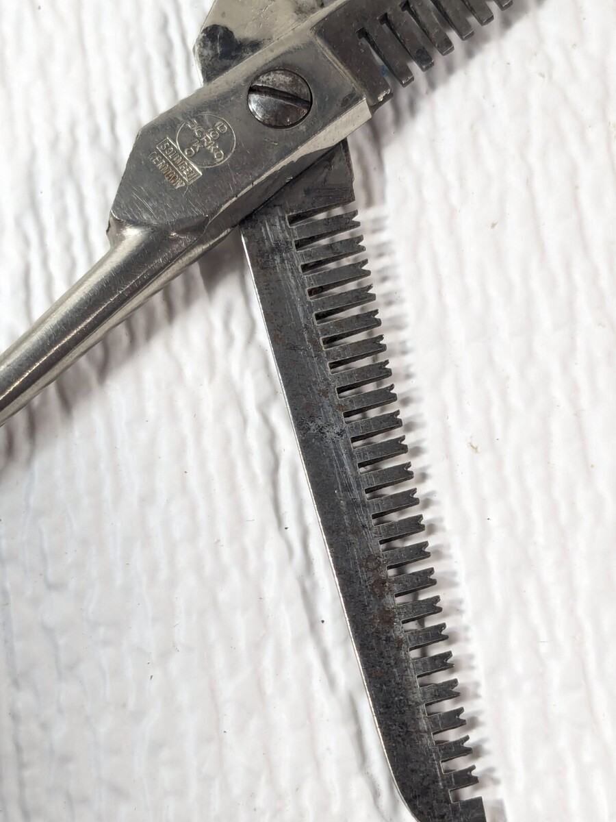 Vintage Dorko hair thinning scissors 280 Solingen Germany grooming shears teeth