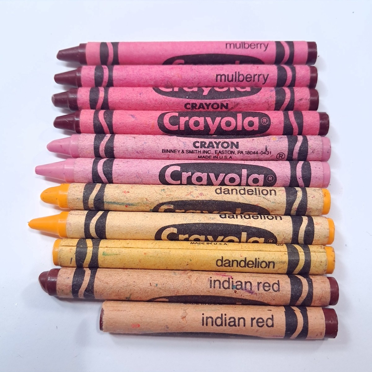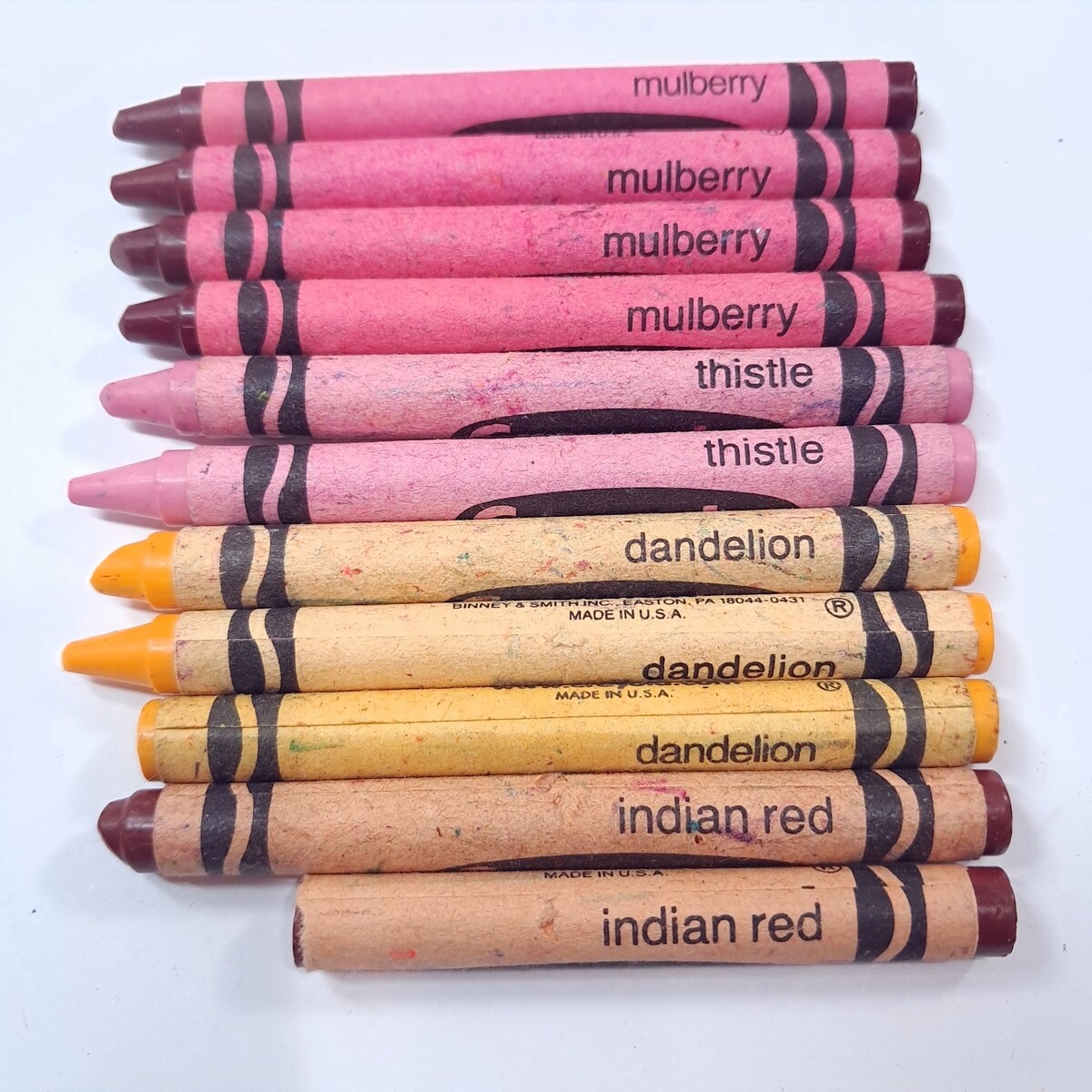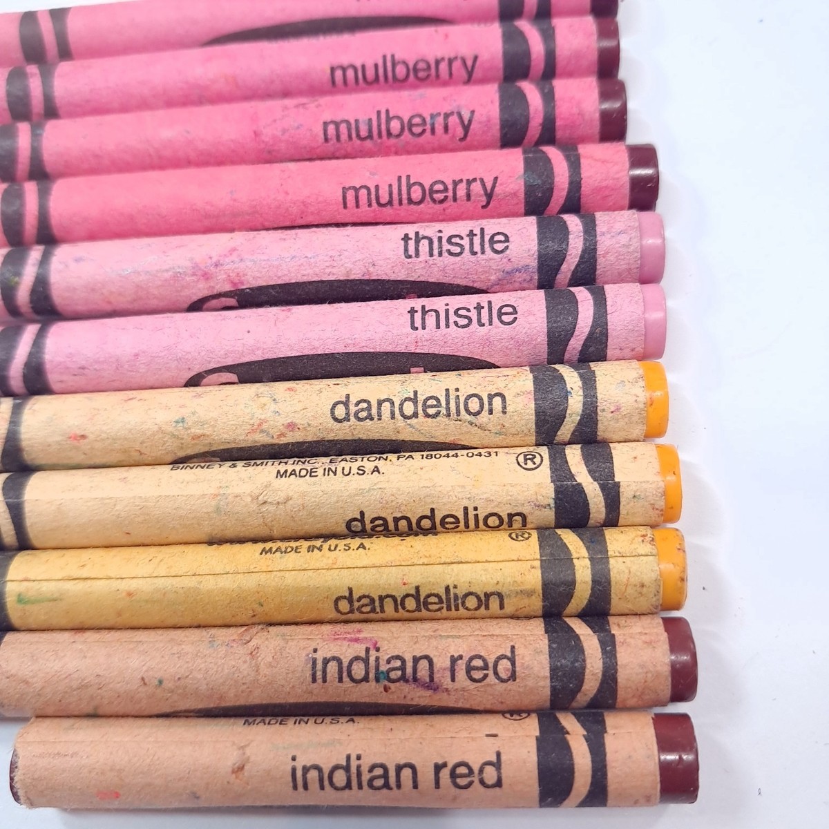 Vintage Crayola Crayons retired Indian red Dandelion Thistle Mulberry USA Binney