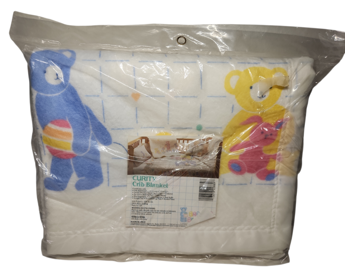 Vintage 1986 Curity Teddy Bears Rabbit Baby Crib Blanket 40x45" Made in USA New