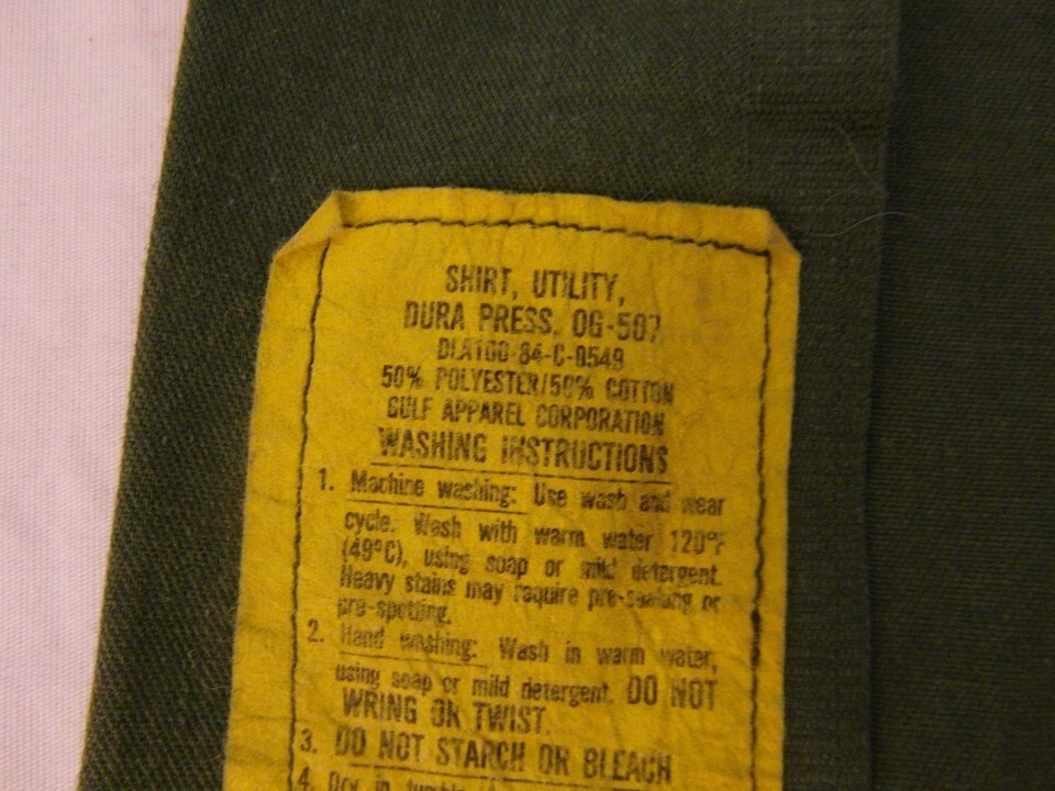 ORIGINAL OG - 507 Shirt went into production right after the Korean War : The Utility Uniform was made primarily for the Vietnam Era and used During the War and was replaced by the OG 107 Utility Shirt Top Blouse Jacket in the same Era. Each OG 507 Shirt are Original and Authentic, Some are in Perfect Condition, some have minor defects that do not take away from the operation of the Shirt, Some have certain Stains, Some have Minor Holes that are pointed out in each picture, just know that these are Original Regulation OG 507 Tops that were Mass produced in 1959 thru 1967, they are no longer produced . Originally there were many Contractors that produced the shirts, but now they are a collectible . Each one of our shirts came from a lot in Fort Bragg NC Sold at a DRMO SALE . Each Shirt was worn by a Soldier at one time. Some Shirts were turned in by Units Serving in the 82nd Airborne and Coscom. that is what it said outside the box these came in.