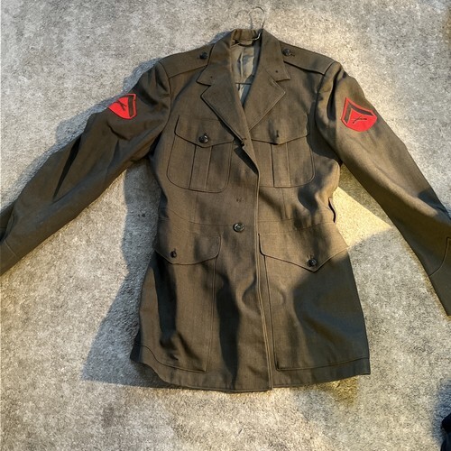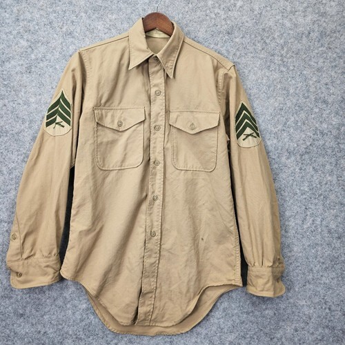 VINTAGE 1985 UNIFORM BLOUSE SHIRT MANS KHAKI USMC U.S. MARINE CORP 14.5