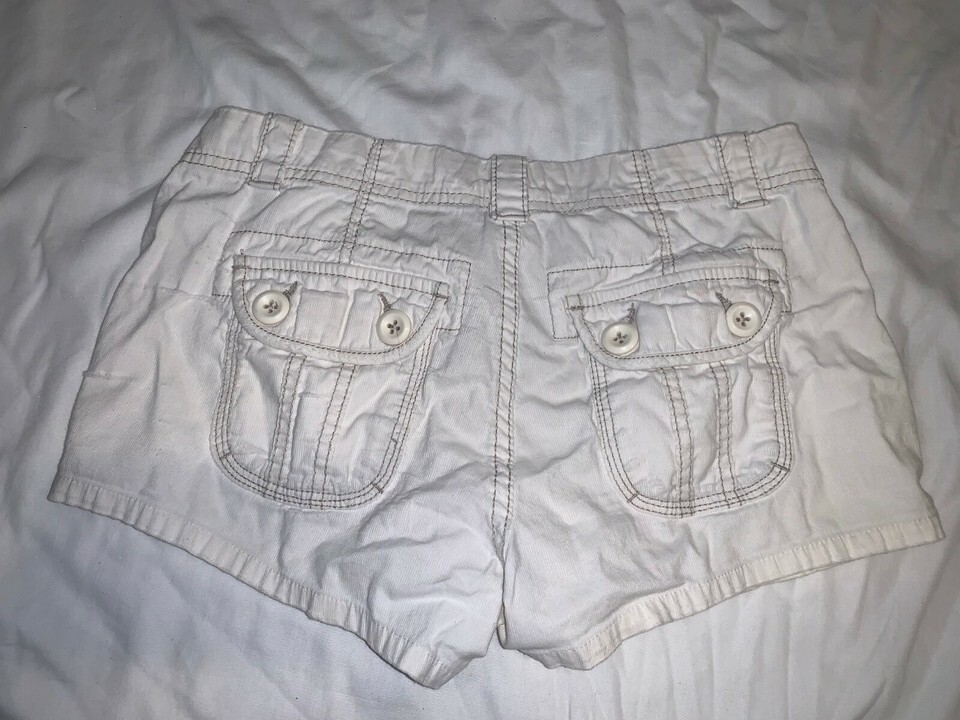 WOMENS AEROPOSTALE WHITE CORDUROY VERY SHORT SHORTS 1/2 BUTTON