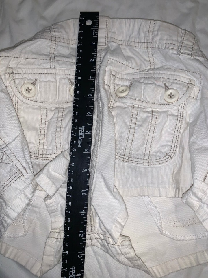 WOMENS AEROPOSTALE WHITE CORDUROY SHORT SHORTS 1/2 BUTTON CLOSE BACK POCKETS