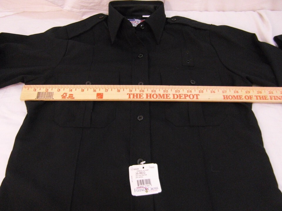 ITEM : 2 New Flying Cross Uniform 36 Regular Black Button Front Long / Short Sleeve Top