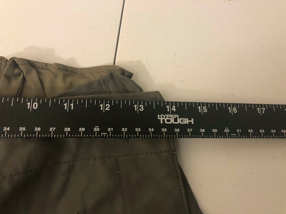 These overalls are pre-owned and has seem much wear with visible worn parts in the material. These are no longer capable of water resistant, and have writing on the inside of the tags.