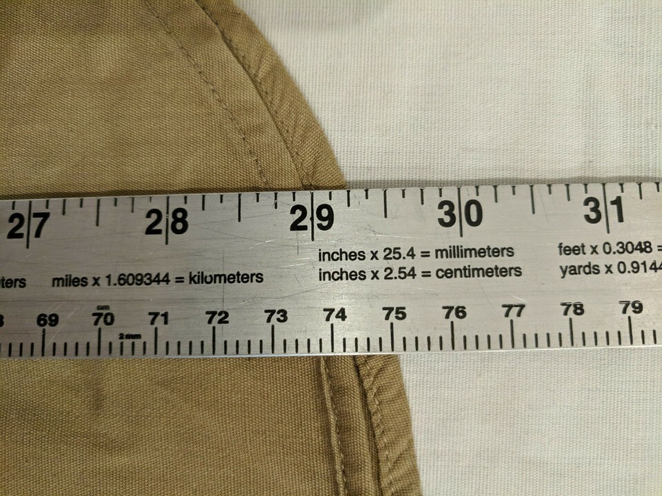 Pre-owned, previously worn. Unknown era, only that this is a Navy Tan Shirt that is no longer the standard for the military. This shirt is vintage and has what might be a size but is too faded. The chest measures out to 42 inches and 29.5 length of the shirt. This shirt is pre-owned, and has the name "martinez' Written in the collar of the shirt.