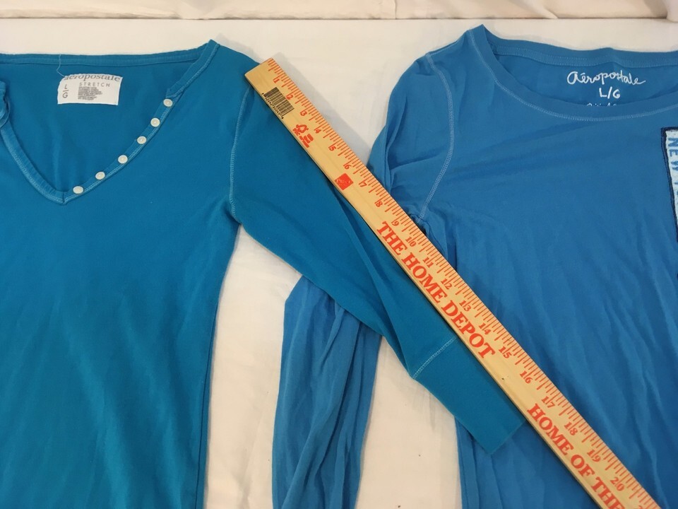 Three Womens Aéropostale Blue & White Cotton Large Stretch Long Sleeve Shirts