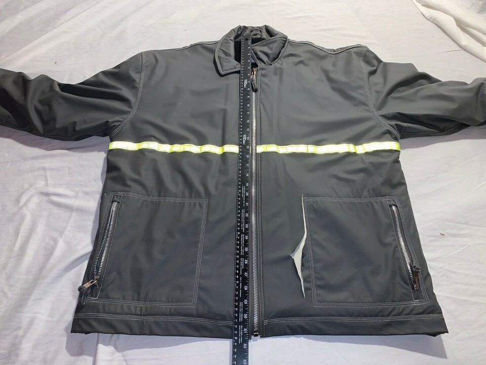 MENS BURNSIDE GREY SAFETY WORK JACKET W/ REFLECTIVE STRIPE XLARGE HAS TEARS