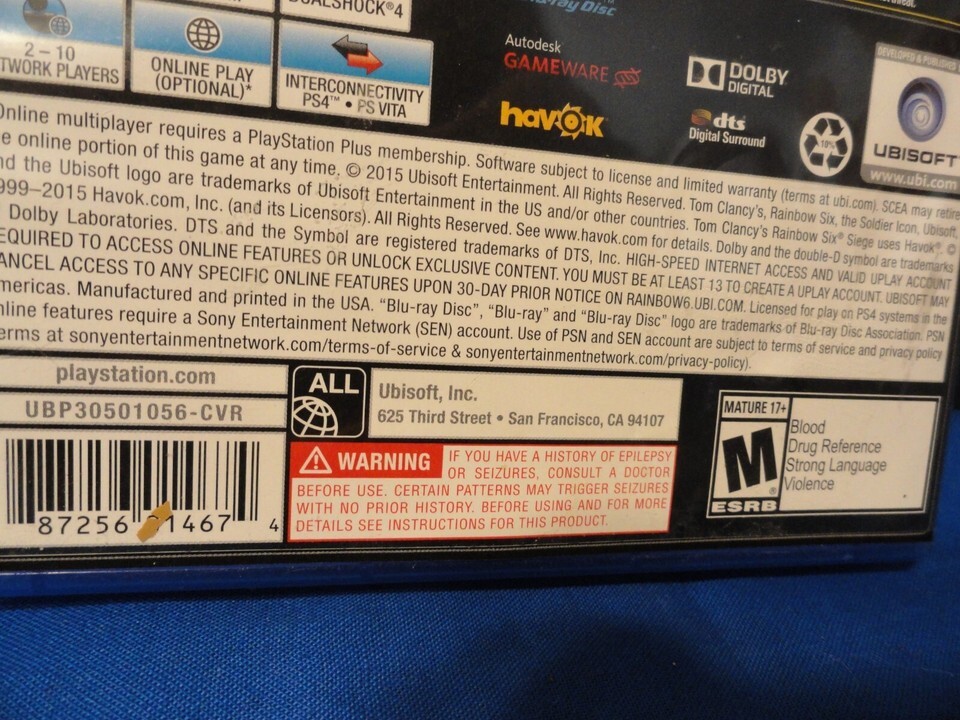 Tom Clancy's Rainbow Six Siege (PlayStation 4, 2015) CD