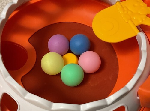 IMPORTANT TO NOTE: This listing includes 5 colored balls. They are NOT the ones originally sold with this toy. Make sure you understand this - as the listing is Sold "As Is." No returns and/or refunds.