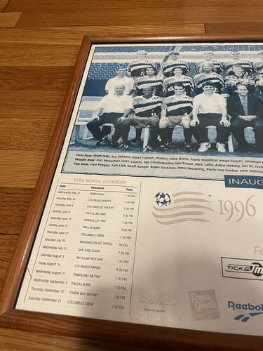 New England Revolution 1996 Inaugural Season Framed Roster Photo Vtg . Shipped with USPS Priority Mail.