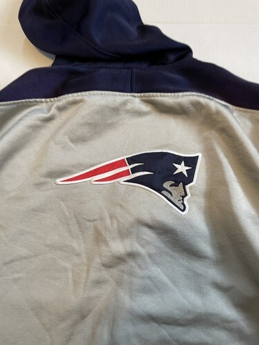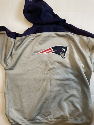 New England Patriots Vtg Reebok Hoodie Pullover Size XL Silver Blue.