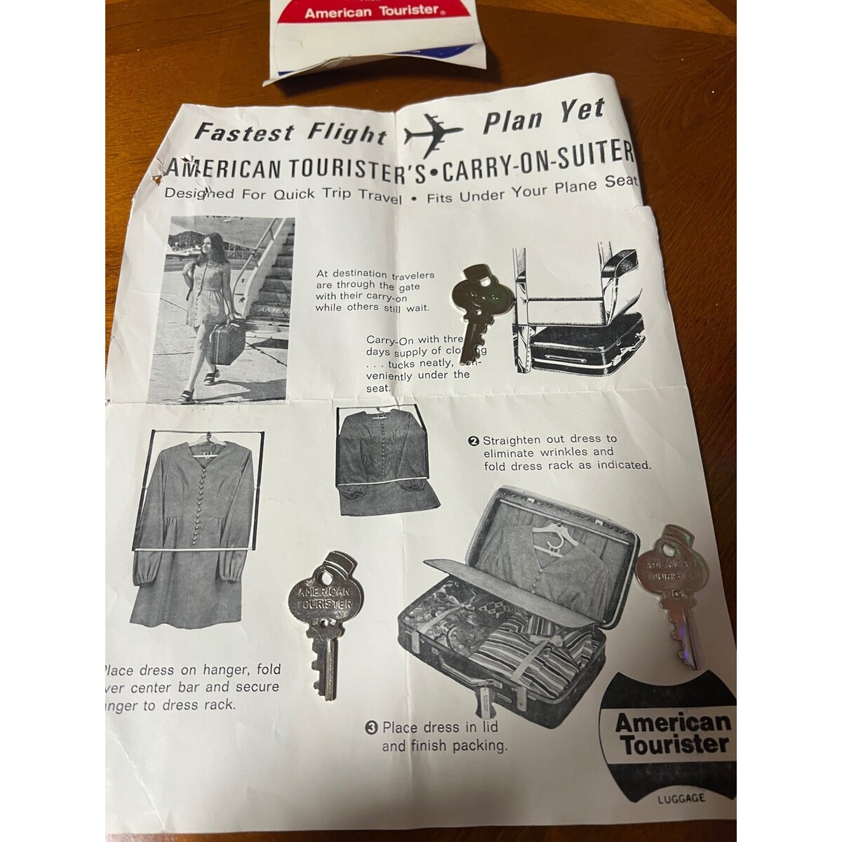 American Tourister Carry On Suiter Keys Manual Sticker Lot Travel Vintage