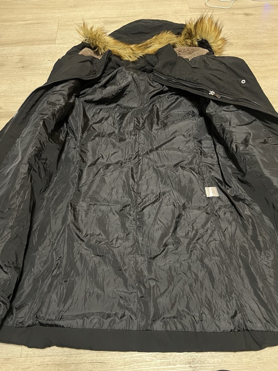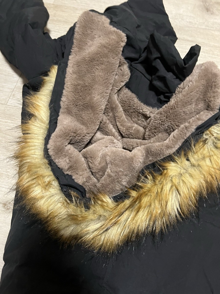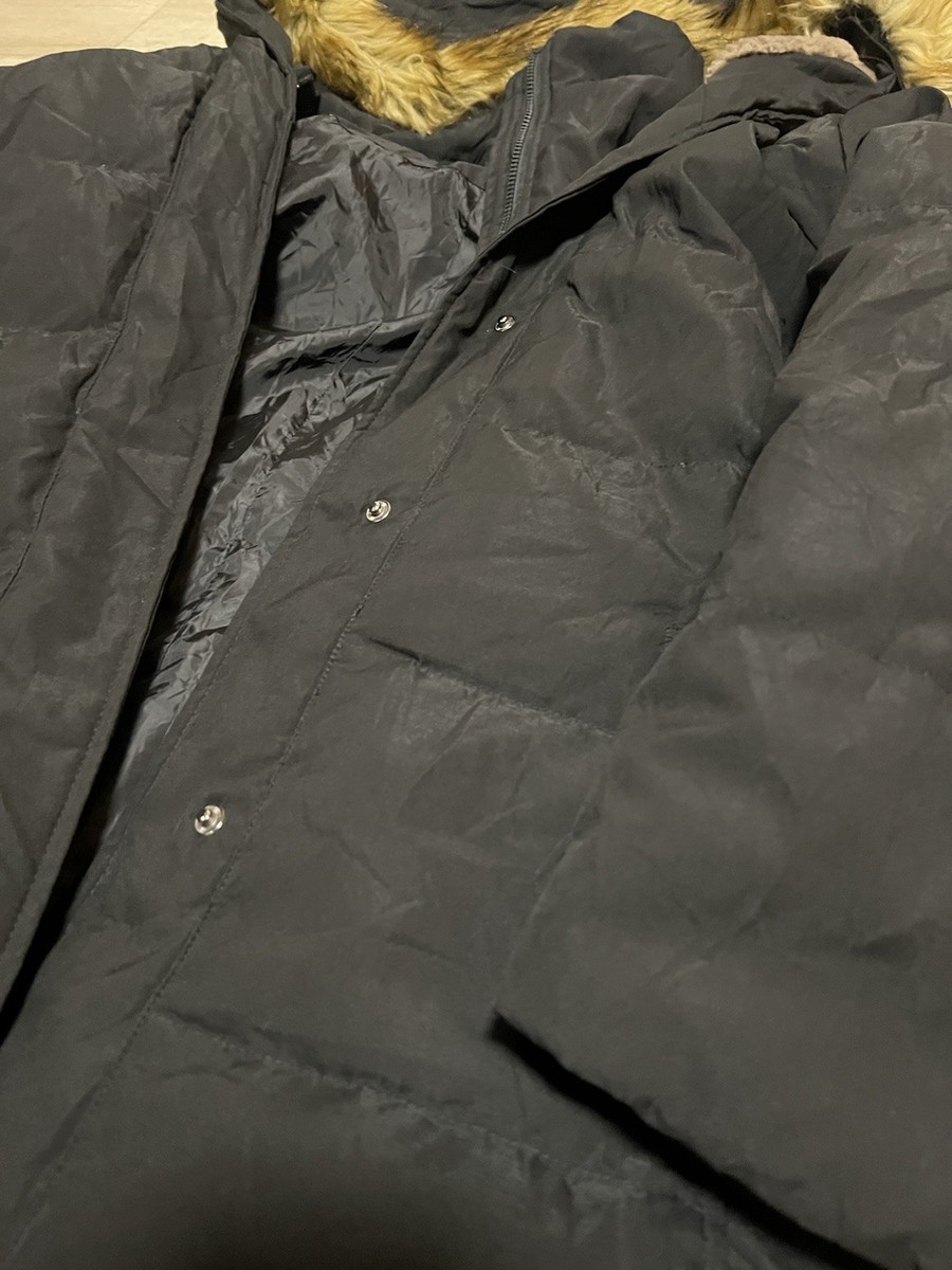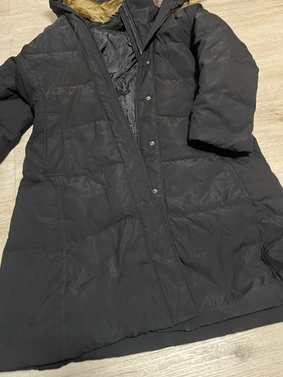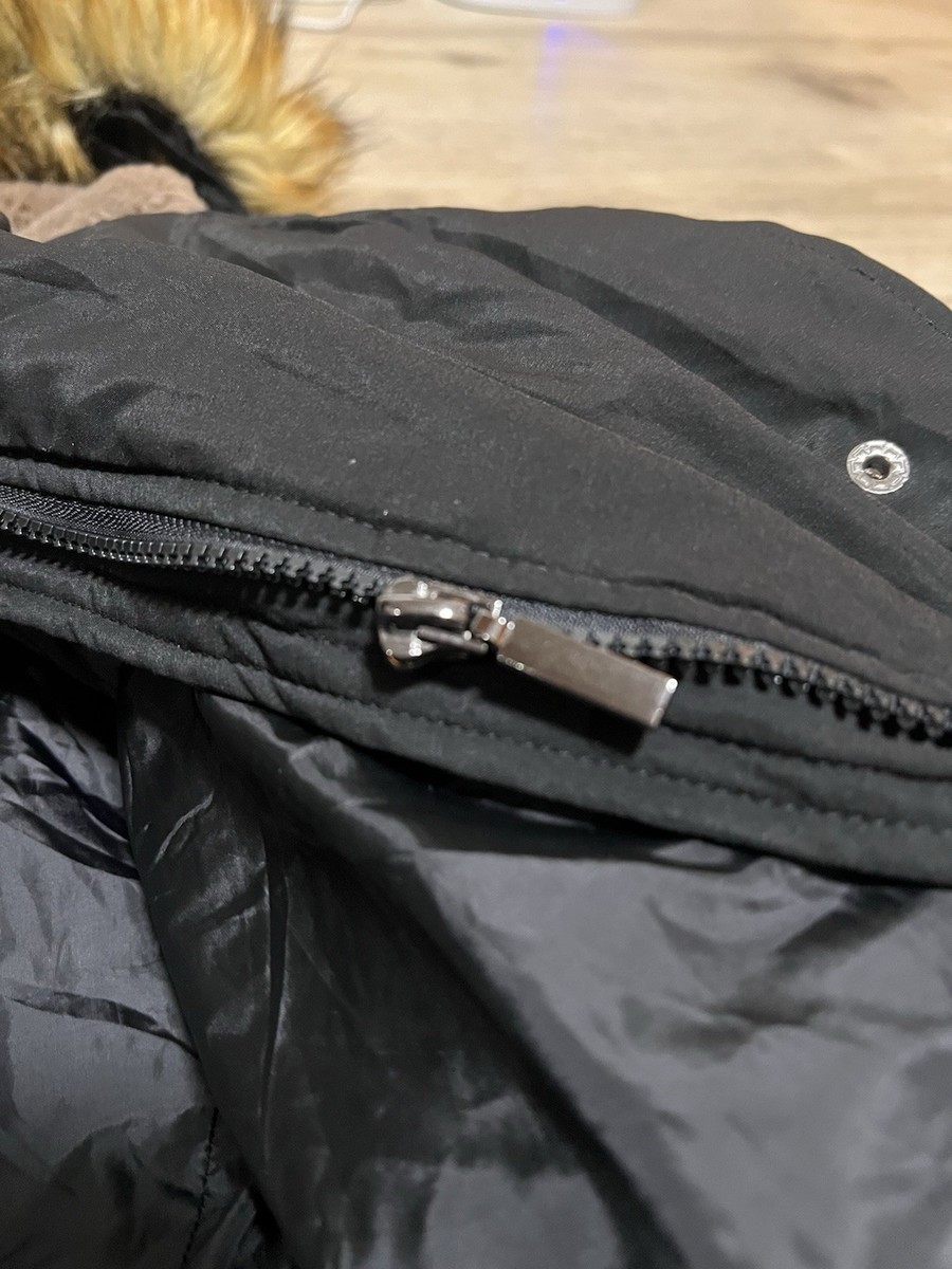 Adomi Full Zip Fur Trim Hooded Puffer Down Black Jacket Coat Size Medium Womens