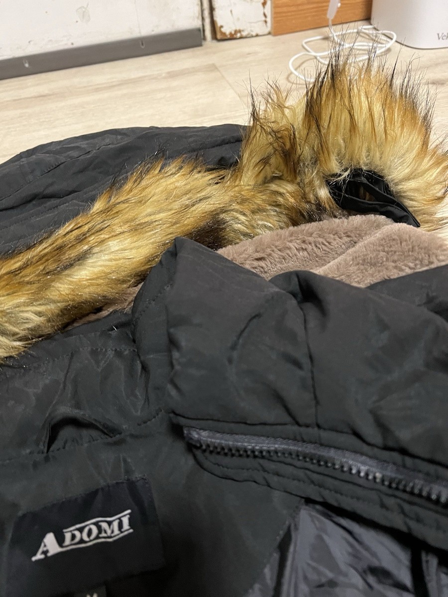 The Adomi Full Zip Fur Trim Hooded Puffer Down Black Jacket Coat in size Medium for women is a stylish and practical outerwear choice for the winter season. Made from polyester with a warm down lining, this long puffer jacket features a classic black color with a hood for added protection. The jacket is designed with a zip closure and fur trim accents, giving it a trendy and fashionable look. Perfect for casual occasions, this Adomi jacket combines a designer touch with outdoor functionality, making it a versatile and chic addition to any wardrobe.