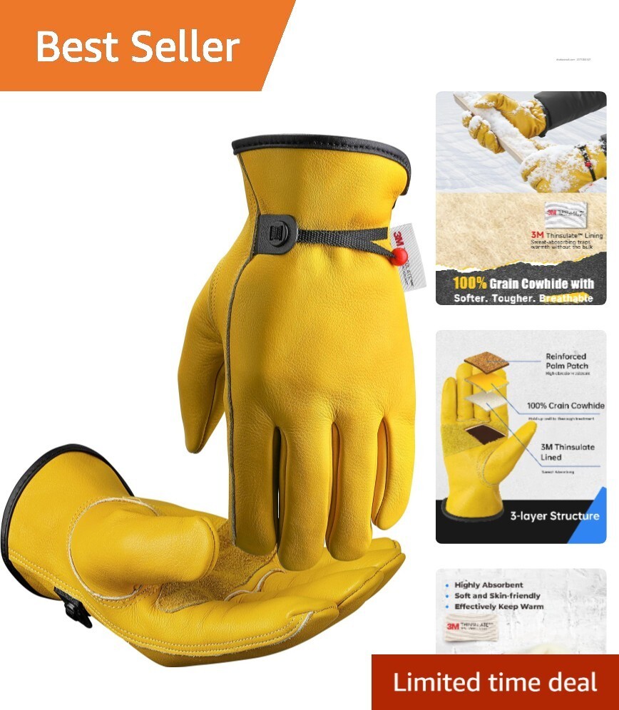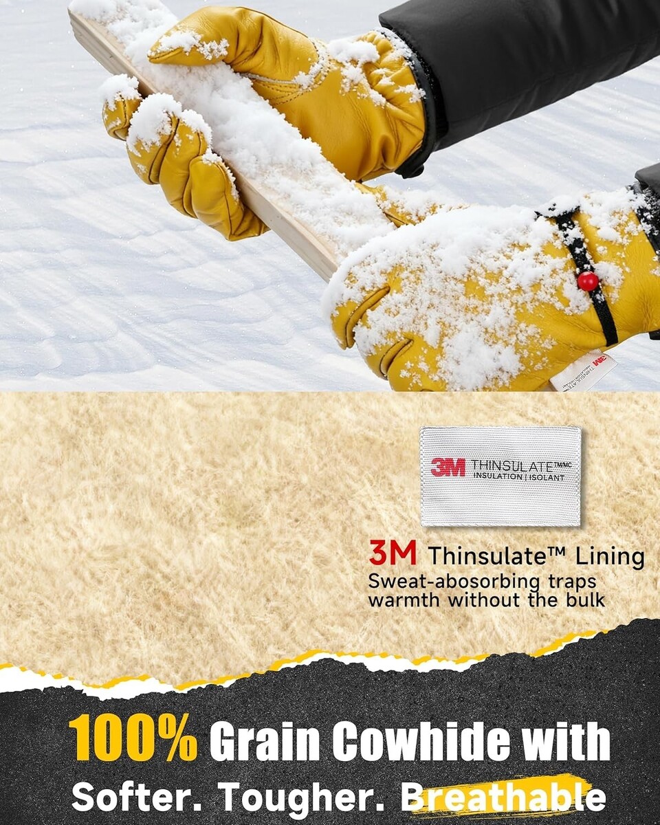 Warming and Comfortable: Crafted from cowhide, these gloves provide superior thermal insulation, expertly retaining heat even in the coldest outdoor conditions. Featuring a luxurious 3M Thinsulate lining, they ensure you stay cozy during your winter tasks.
