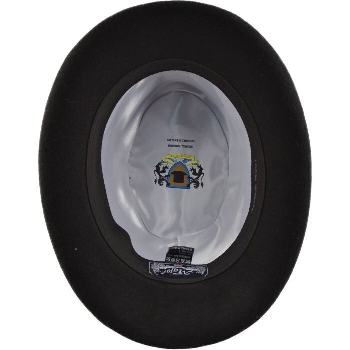 The hat is satin lined with a leather sweatband for comfort and sweat protection. An optional feather can be added to the ribbon side for a personalised statement. Simple care with a brush or dry sponge keeps it looking pristine. Despite its soft wool, the crown remains firm and is 100% water-resistant, ready for any occasion.