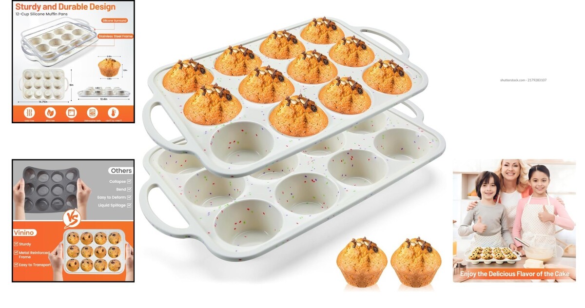 2-Pack BPA-Free Silicone Muffin Pan with Metal Frame - Oven & Dishwasher Safe