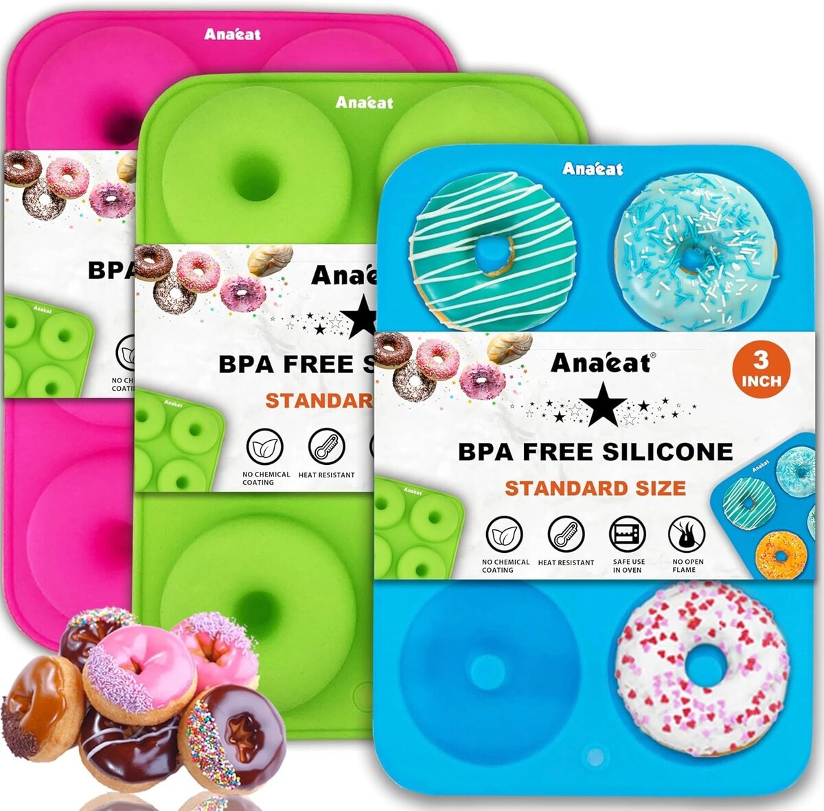 Heat Resistant Non-Stick Silicone Donut Pan Set - 3 Pack for Perfect Baking