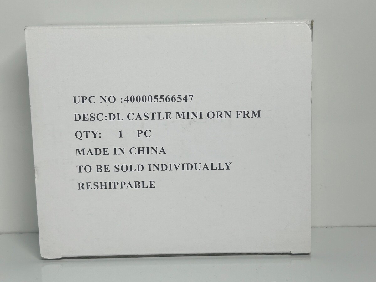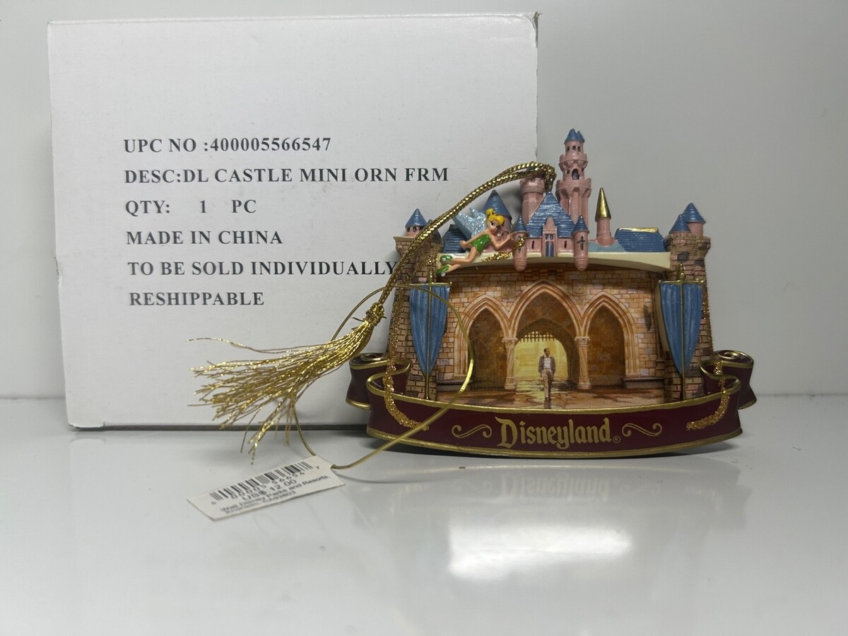 This Walt Disney Castle ornament and picture frame displays the iconic Cinderella castle with Tinker Bell greeting us at the front door. You will be the center of focus as you put your family, your pets, or whatever you like in the center frame. There is a small latch in the back to open the frame, and your image will be protected by a clear sheet of thin plastic. Item is new in box and the image that you see is a display of what you will get sealed inside the box.