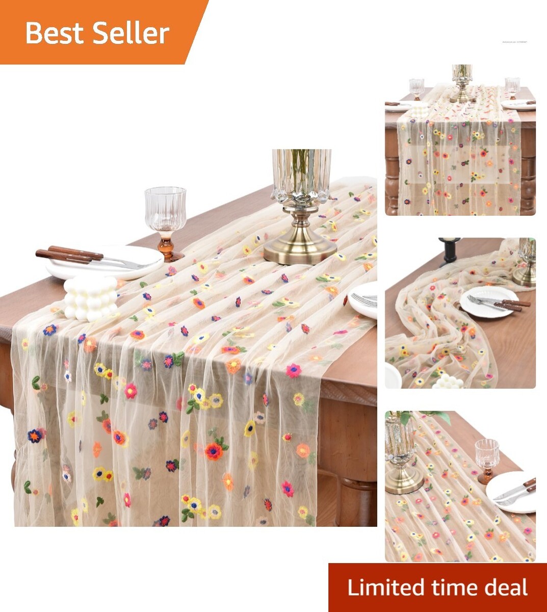 Invest in a piece that resonates with the essence of elegance and versatility. Order the Champagne Floral Tulle Table Runner today and experience the transformation of your space!
