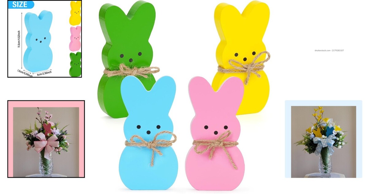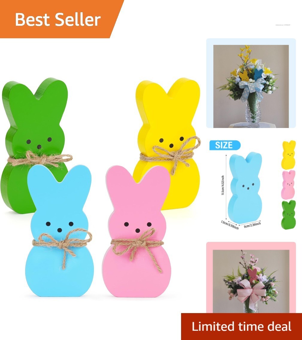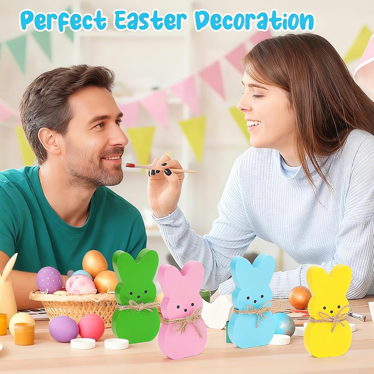 Are you on the hunt for delightful decor to enhance your home for Easter? Look no further! Our set includes 4 enchanting wooden Easter bunny signs, each adorned with a jute ribbon bow for a whimsical touch, available in four delightful pastel colors: pink, green, blue, and yellow.
