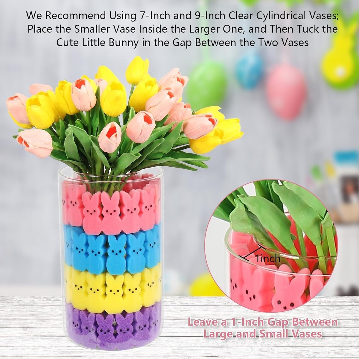 For an exquisite display, we recommend using 7-inch and 9-inch clear cylindrical vases. Place the smaller vase inside the larger and tuck the cute little bunnies in the gap?an exquisite touch to your home decor. Alternatively, set them atop a tiered tray or your dining table as a delightful centerpiece that will undoubtedly brighten your Easter celebrations.