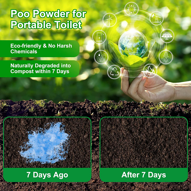 Eco-Friendly Biodegradable Gel - Our portable toilet chemicals poo gel is mainly made of super absorbent polymer, it can absorb and retain extremely large amounts of a liquid relative to its own mass. The treated waste liquid gel can be degraded naturally by soil composting or under the sunlight which is non-toxic, eco-friendly, safe for your family and the environment.Camping Toilet Chemicals is great for eco conscious travelers. Also boating gifts for men as boating equipment