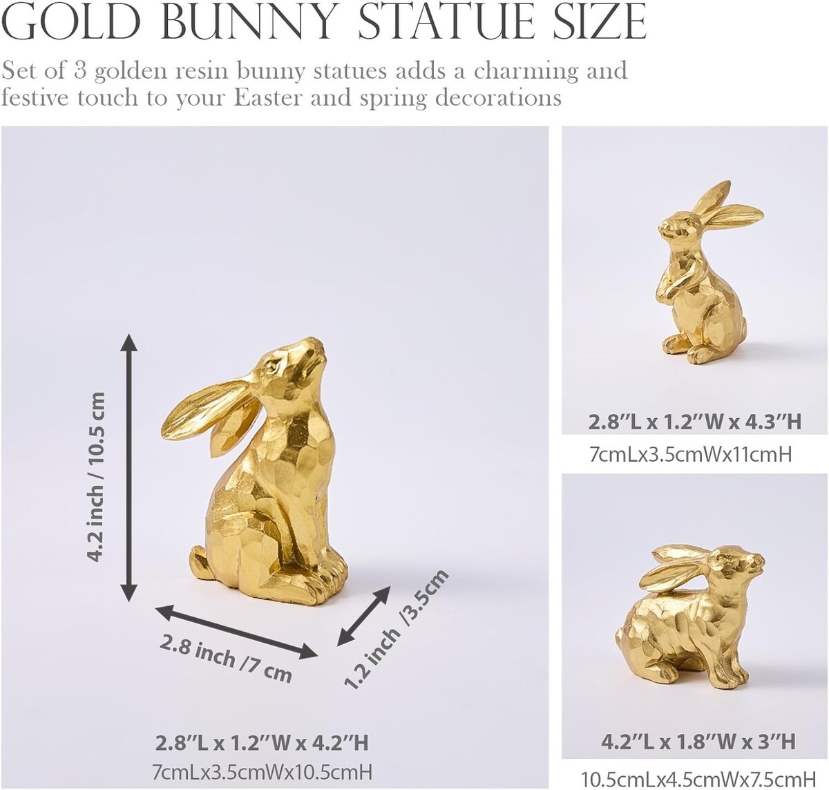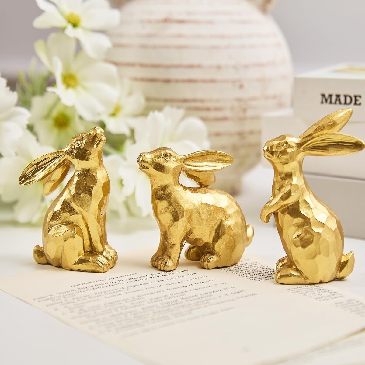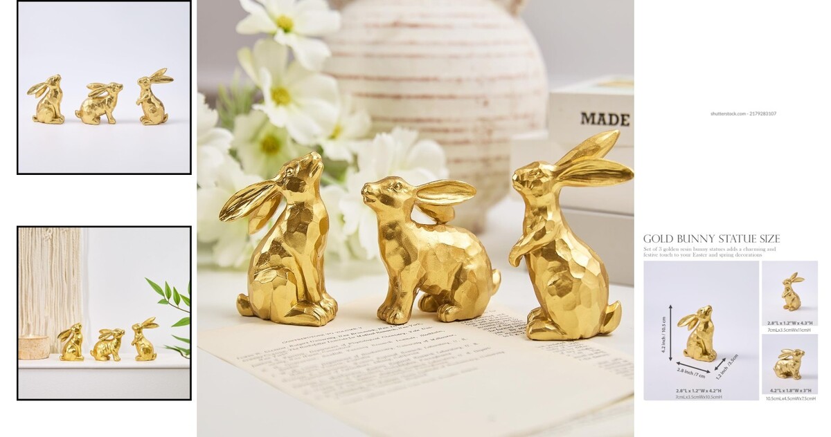 3 Golden Bunny Statues - Versatile Decor for and 50 similar items