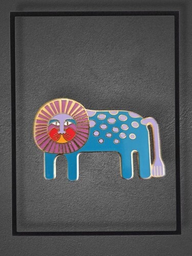 UP FOR SALE: Vintage Laurel Burch "Leonardo" Lion Multicolor Pin Brooch Gold Plated Big Cat