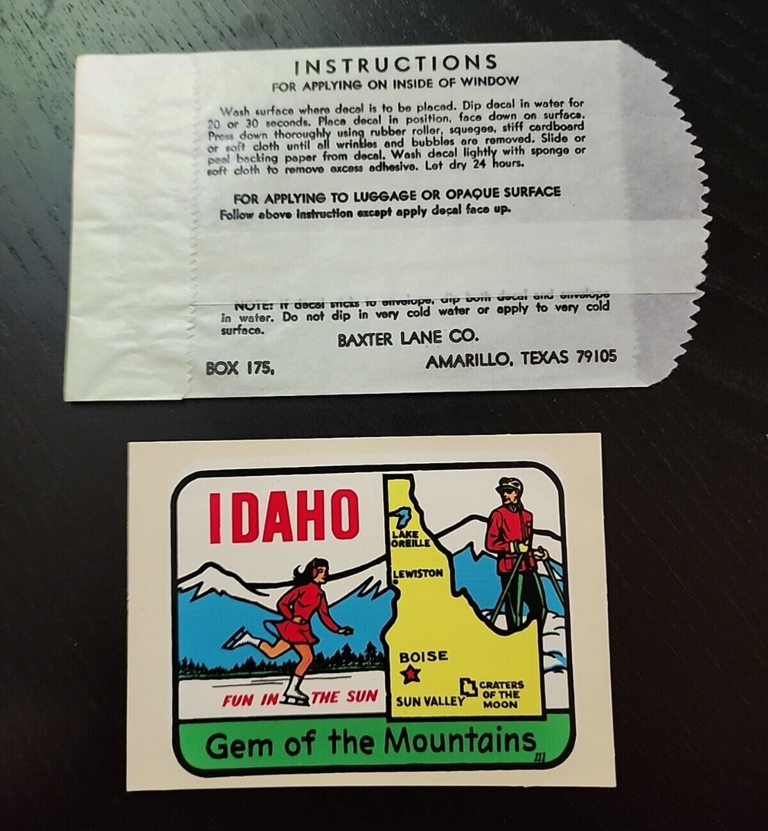 BAXTER LANE CO Idaho Gem of the MTNs VTG Travel Luggage Water Decal Sticker #111