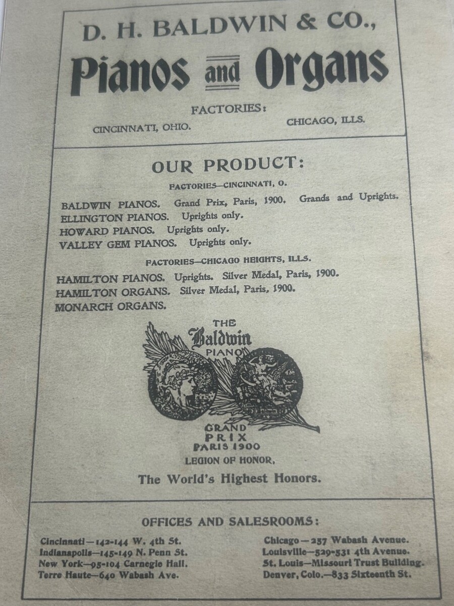 ? Significance: Issued during Baldwin?s "Golden Age" in Chicago (257 Wabash Ave), just as they won the Grand Prix at the 1900 Paris Exhibition.