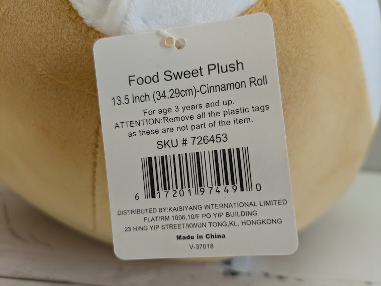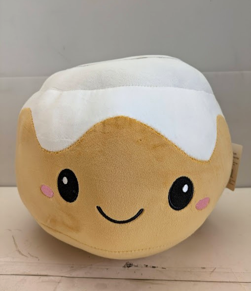 This adorable plush toy is perfect for any food lover! With its cute cinnamon roll design, complete with swirly icing and hearts, it's sure to bring a smile to anyone's face. Measuring at 13.5 inches, it's easy to take on the go and washable for easy maintenance. Bring home this delicious and charming cinnamon roll pillow today!