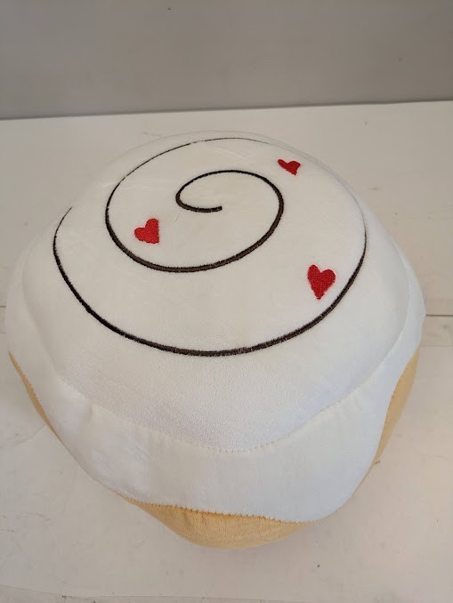 Food Sweet Plush 13.5" Cinnamon Roll Pillow Swirly Top With Hearts Valentines